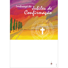 DESCRIÇÃO: Certidão para jubileu de confirmação na fé, com a Rosa de Lutero. Ela é um símbolo da doutrina luterana, que destaca a graça de Deus, a fé somente em Cristo, a Escritura como fonte de orientação e Cristo como único Senhor.